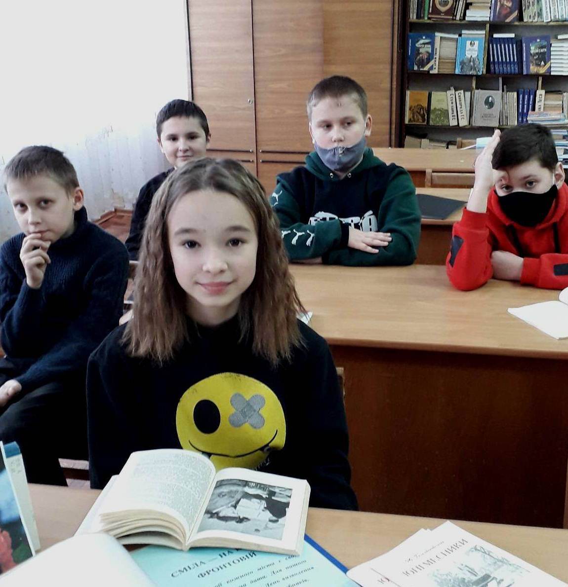 Із цікавістю п’ятикласники слухали розповідь бібліотекаря Ганноченко Н.А. про історію воєнного лихоліття нашого міста та самі згадали, як їхні рідні прадіди та прабабусі ділилися спогадами про тяжкі ті часи.